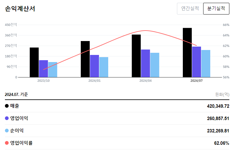 주식 시장에서의 높은 평가에도 불구하고, 지속적인 기술 혁신과 시장 확장을 통해 장기적인 성장 가능성을 확보하고 있습니다.