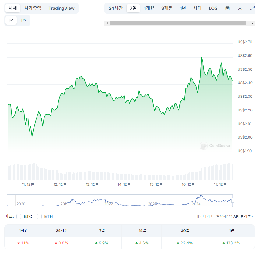 24시간 동안 2.5% 상승했으며, 30일간 22.4% 상승했습니다.