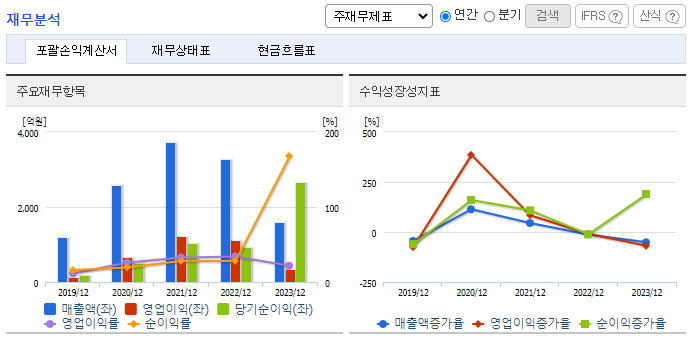 2024년 3분기 매출액은 2085억 원으로 전년 동기 대비 568.4% 증가했으며, 영업이익은 무려 3320.9% 증가한 993억 원을 기록했습니다.