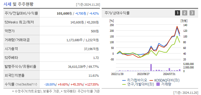 리가켐바이오 주가 전망 역시 바이오 산업의 특성상 연구 개발의 불확실성, 규제 환경의 변화 등에 민감하게 반응할 수 있습니다.
