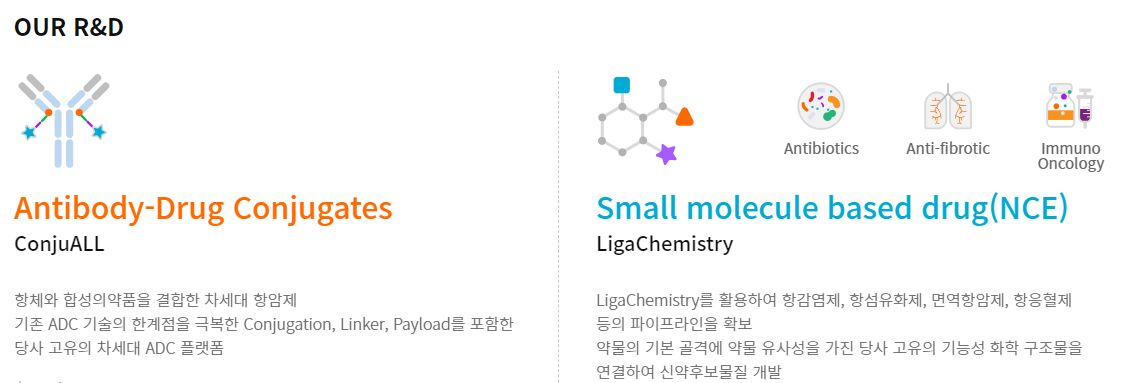 의약화학을 기반으로 글로벌 신약 R&D에 주력하는 연구중심형 제약회사로, 차별화된 링커 및 결합기술을 보유하고 있습니다.