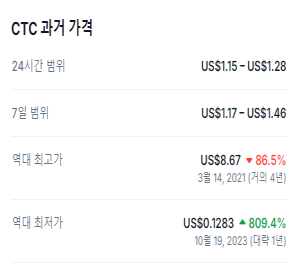 일부 분석가들은 CTC가 2024년 말까지 0.5달러를 돌파할 수 있다고 전망하고 있습니다.
