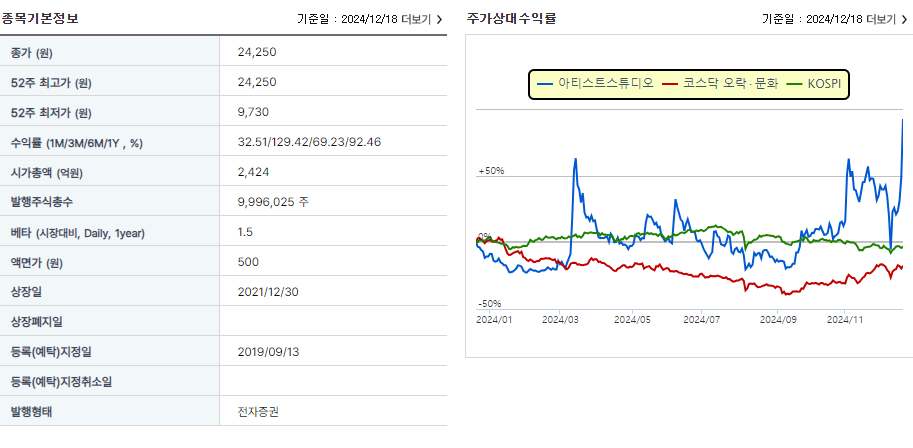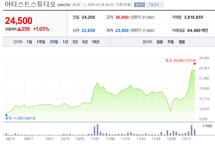 아티스트 스튜디오의 주가가 최근 급등세를 보이고 있습니다.