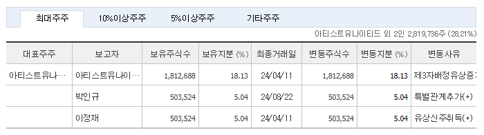 배우 이정재가 주요 주주로 참여하고 있으며, 5.04%의 지분을 보유하고 있습니다.