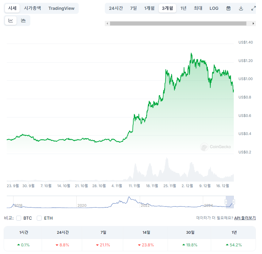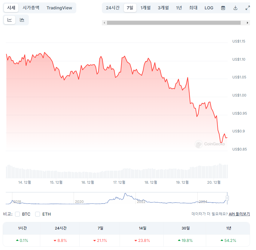 12월 20일 기준으로 에이다의 가격은 약 0.88달러를 기록했습니다.